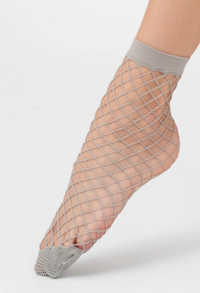 Fashion netankelstrømper fra Veneziana. Strømperne har flot kant og forstærket tå. Føres i rosa, hvid, blå (jeans) eller grå i onesize.